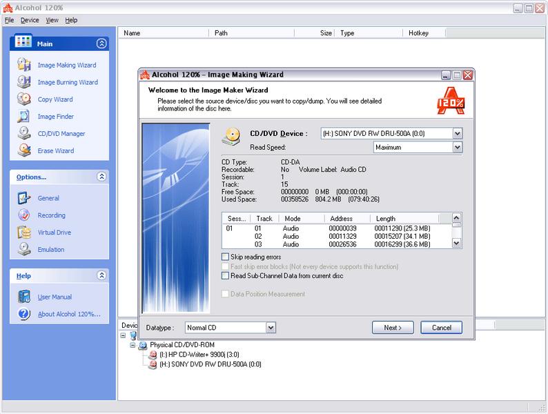 Alcohol 120 % — это компьютерная программа для создания образов CD и DVD дисков, создания виртуальных приводов CD и DVD, а также для записи CD и DVD дисков.