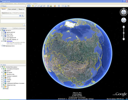 спутниковая карта карты Google двойная карта. Гугл Земля - 3D глобус планеты. Строка статуса.