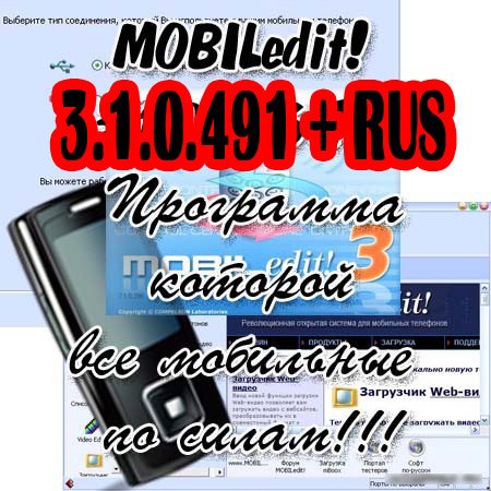 MOBILedit! - уникальная модульная программа, которая позволяет Вам управлять вашим мобильным телефоном с персонального компьютера через Bluetooth, ИК-порт или кабель.Вы можете легко скопировать фотографии с телефонаСкачать MOBILedit! 3.1.0.491 + Rus (20 МБ)