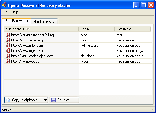 Восстановленные пароли можно экспортировать с текстовые файлы, HTML или в файлы Excel. Opera Password Recovery также позволяет просматривать и управлять файлами cookies, кэшем, закладками и набранными URL.102. Симпатии