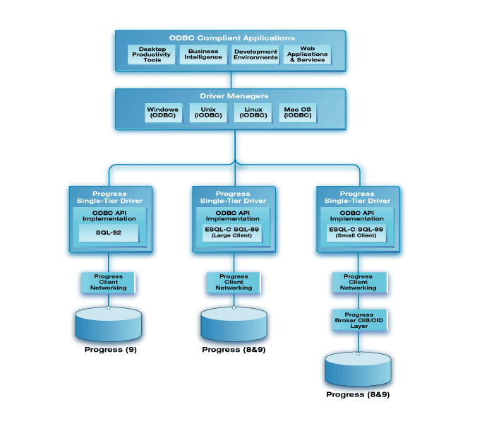 Интегрировав и расширив Progress 4GL, WebSpeed, и линию продуктов баз данных, 9-я версия Progress предлагает единое решение дляМощные средства реализации SQL-92, ODBC и JDBC, и встроенная JVM. Прозрачный доступ к базам данных всех ведущих производителей.